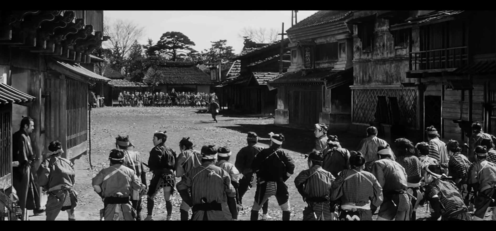 在“用心棒”裏,兩夥惡人的據點離的很近卻誰也喫不掉誰。