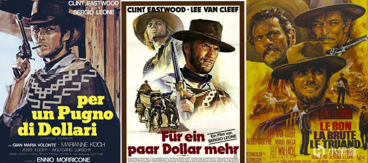 借鑑成功的案例當然也不少。“鏢客三部曲”相信很多人都有所耳聞,我最鐘意的是其中的第三部:“黃金三鏢客”。此係列便借鑑了日本導演黑澤明的拍攝風格,藝術感十足。