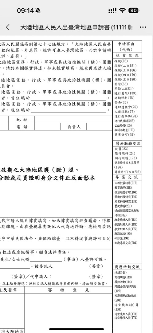 以上所有簽證都需要圖二這張入台申請才可以過去