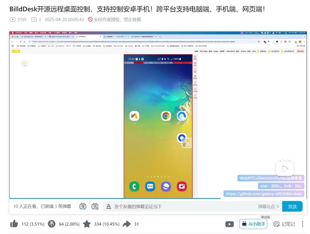 不過從完成度和兼容性來看,目前的BilldDesk只能算是一個玩具,體驗的時候經常能遇見:連不上、沒有畫面、安卓端閃退、鼠標超出邊界無法控制、客戶端無法獲取配置文件、macOS的安裝需要手動處理打開損壞,以及教程不完善等問題。