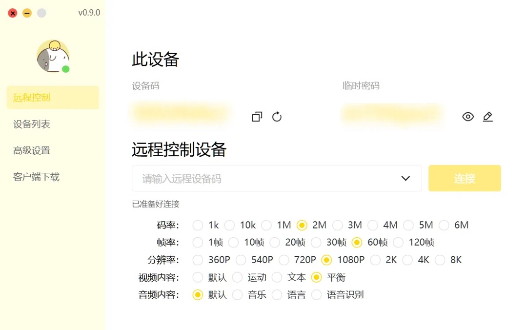 作者提供的免費版本雖然沒有功能上的限制,但是畫質和延遲基本上只屬於能用的水平,畢竟最高6M的碼率,不能兼顧高分辨率和幀率的需求。