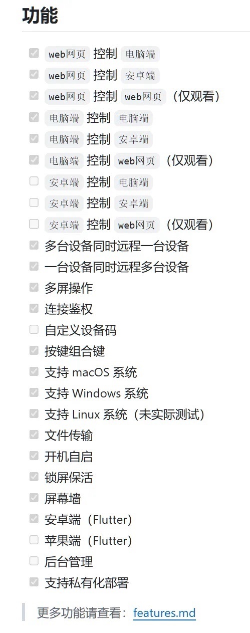 在雲端部署方面也沒有RustDesk便捷,RustDesk在寶塔和1Panel等面板裏也有單獨應用支持,可以直接部署,兩者也不存在什麼可比性,Todesk是商業化比較成功的項目,RustDesk在開源上也很成功了。