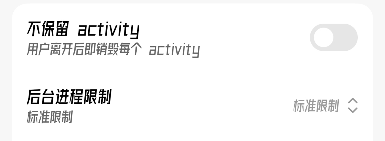 不保留activity(關) 後臺進程限制(標準限制)