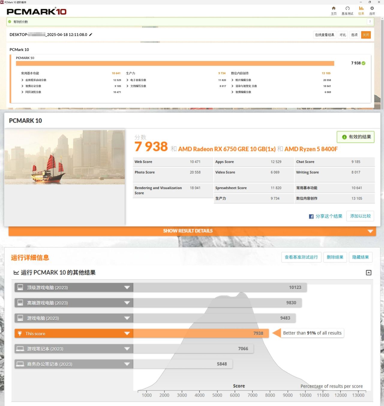 经过实际测试,这套硬件配置在PCMark 10中的表现得分为:7938。