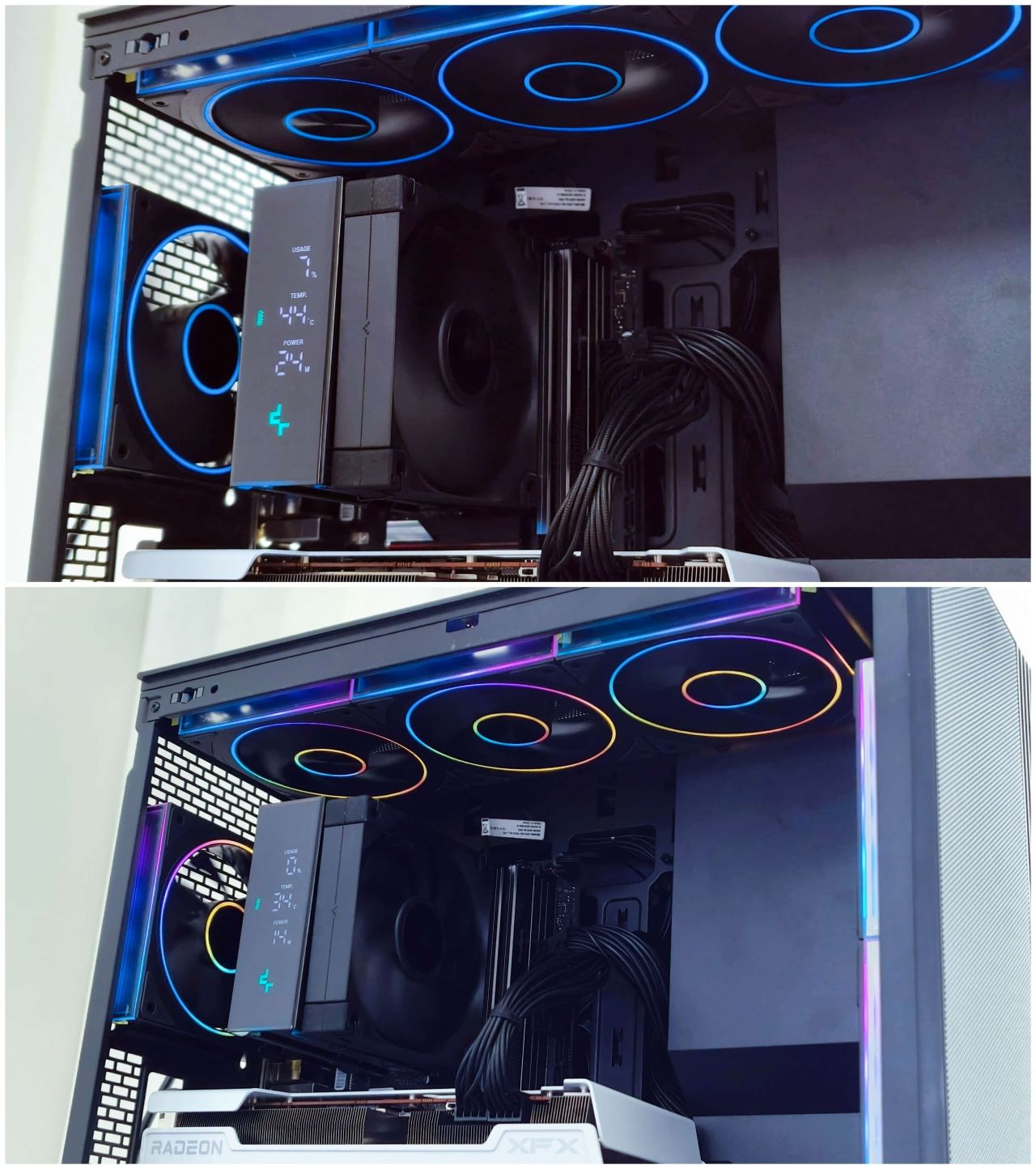 安装完毕后,丛林豹星环12CM机箱风扇在白天散发出的黄色灯效格外醒目,尽显高端大气之感。