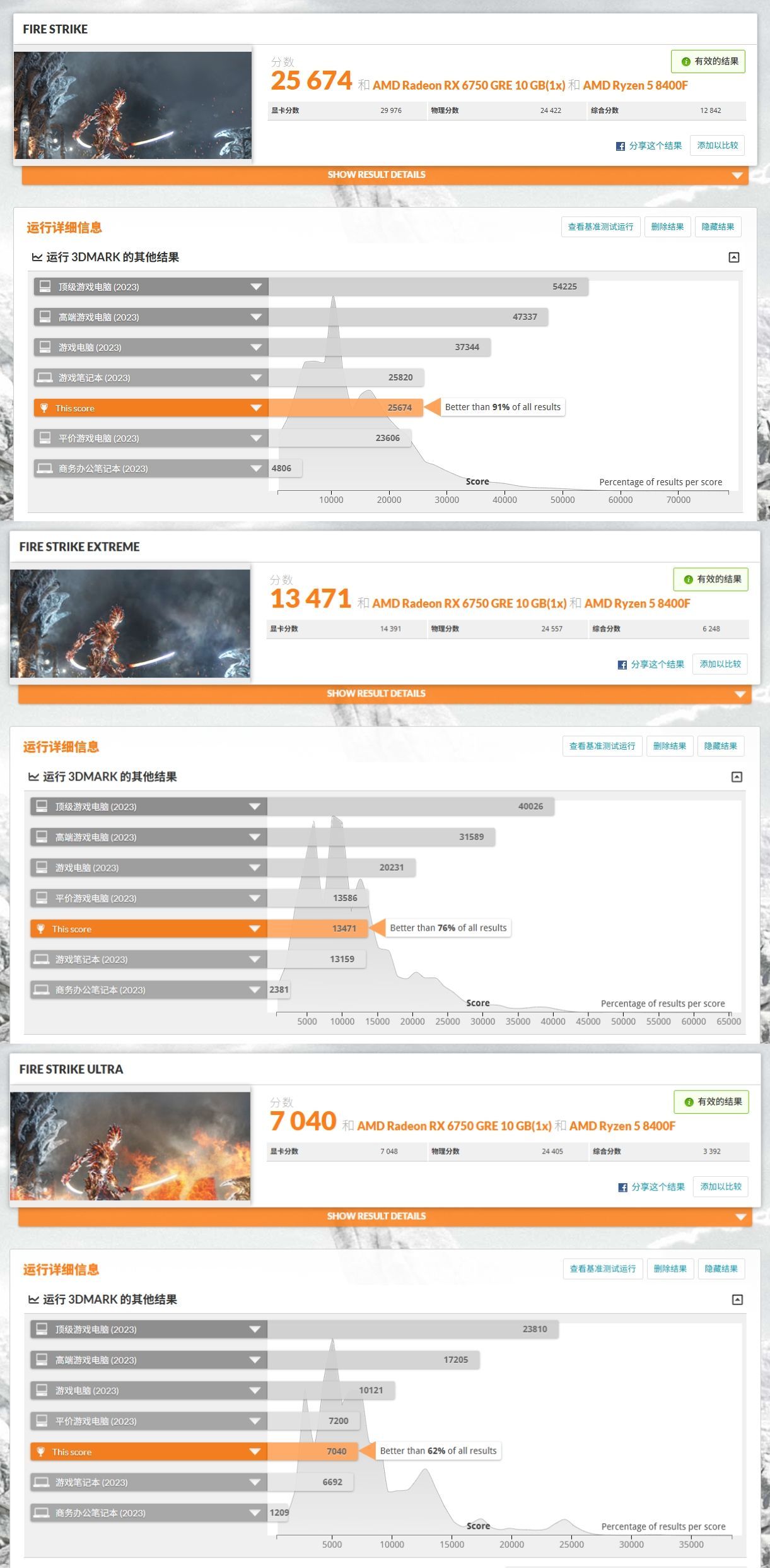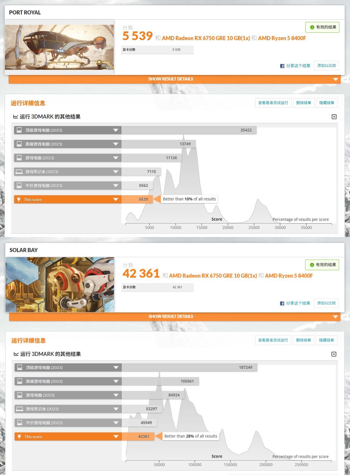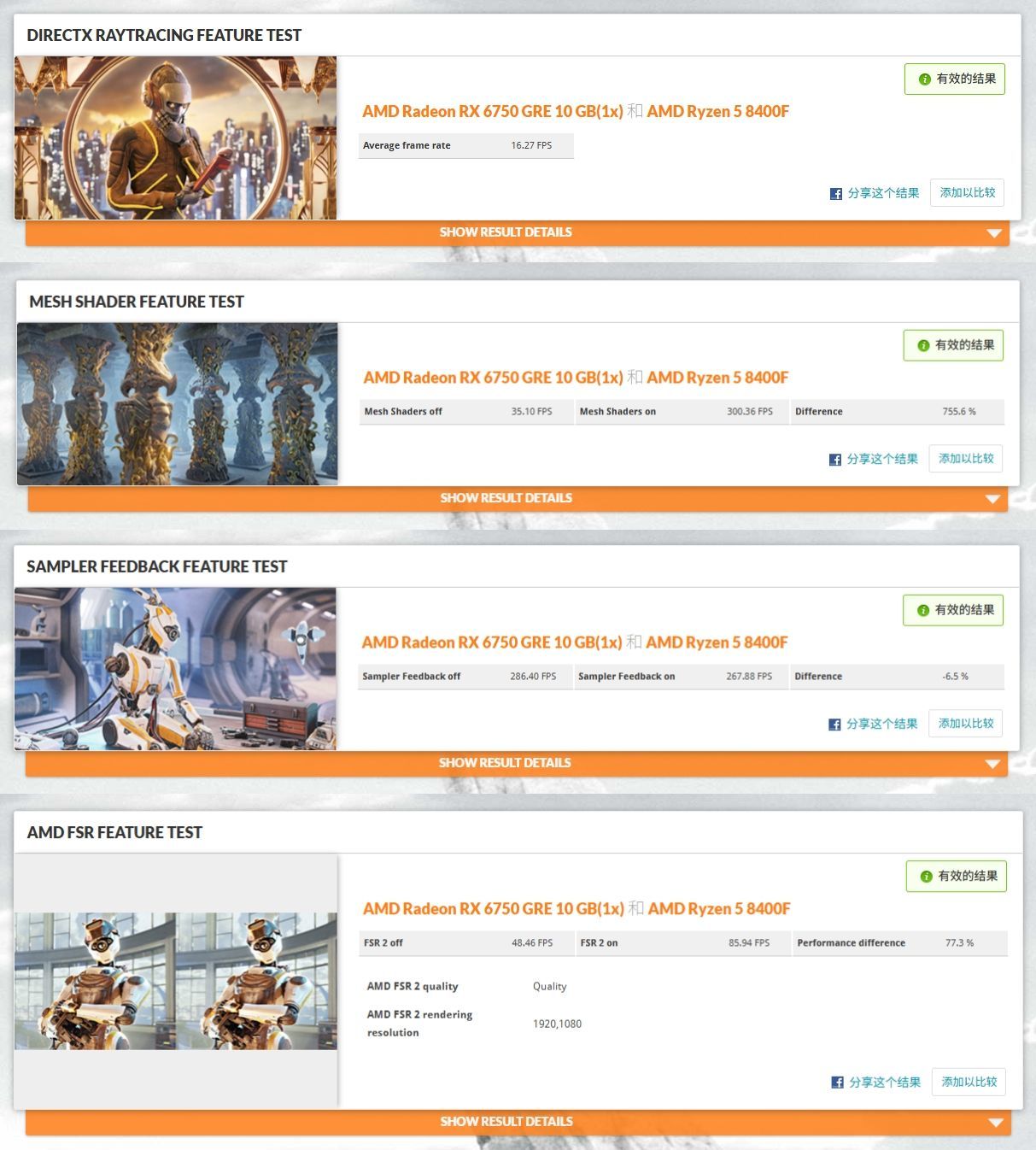 经实际测试验证,XFX所推出的AMD Radeon RX 6750 GRE 10GB显卡,在3DMark 11软件的各项测试项目中性能表现情况如图所示。