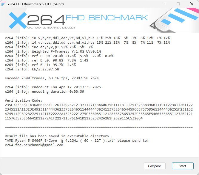使用X264 FHD Benchmark评测软件对整机进行性能测试,性能表现如图所示。