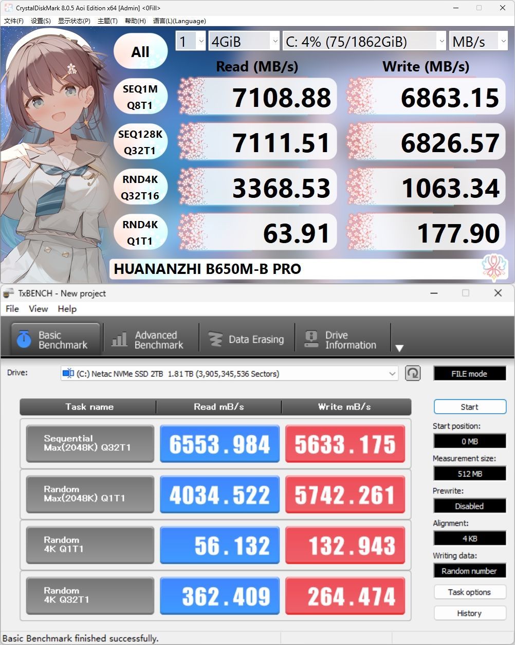 经过实际测试,华南金牌B650M-B PRO主板上的M.2插槽在搭配PCIe 4.0 SSD时,其性能表现相当出色,令人满意。
