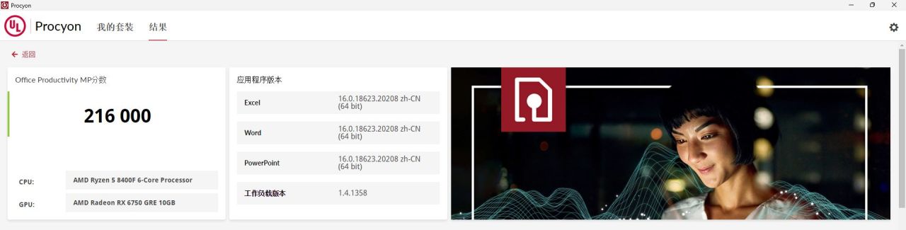 使用Procyon软件对整机硬件进行测试,在Office Productivity MP分数的测试页面进行测试,得分情况如下: