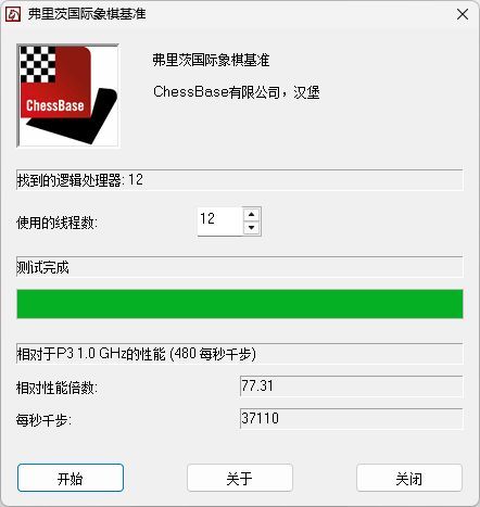 使用Fritz Chess Benchmark软件对CPU进行性能测试,CPU相对性能倍数:77.31,每秒千步:37110。