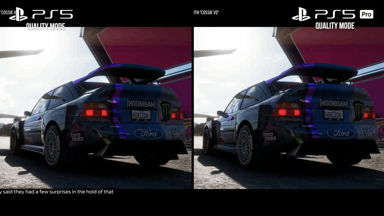 畫質模式新增了駕駛過程中的光線追蹤反射效果,例如車輛在鏡面、鍍鉻表面等動態場景下的實時反射效果,而PS5原版僅能在車庫等靜態場景中實現類似效果。此外,PS5 Pro的GPU性能提升67%,使得光追渲染效率更高,畫面更細膩。