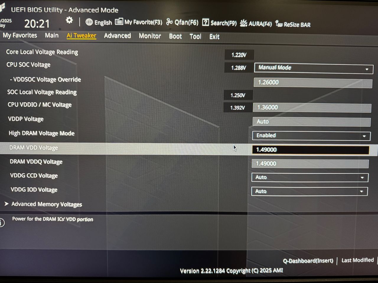 內存電壓與時序是相輔相成的,主要是根據內存默認的EXPO的電壓進行調節。