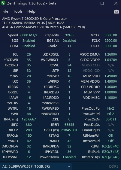 內存:6000MHz  26-38-38-36