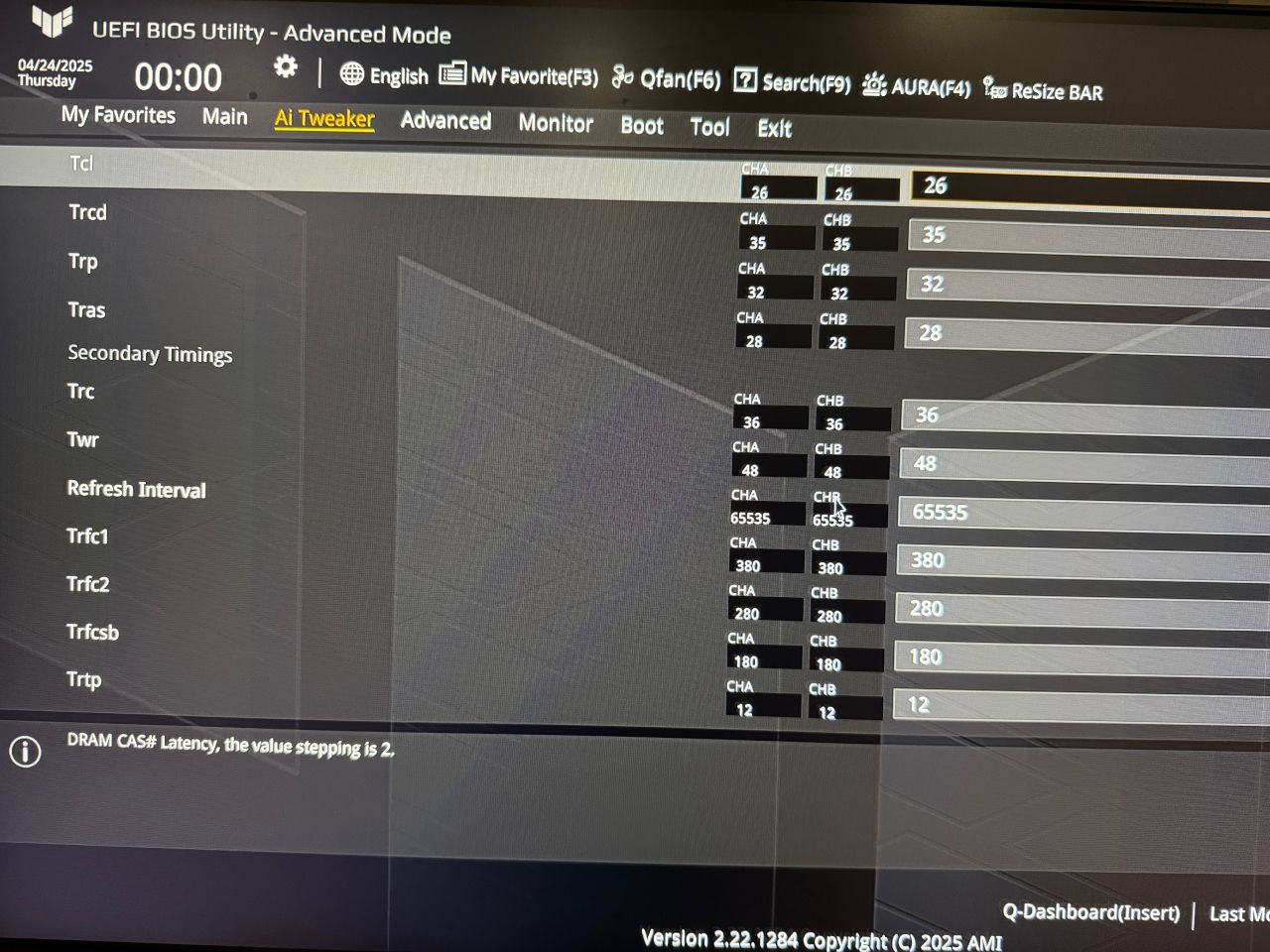 第一時序壓到C26,你起手內存電壓就給1.5V,肯定是沒問題的,等第二時序第三時序都壓好了,打遊戲也穩定了,你最後再往下降這個內存電壓,直到降到一個程度後,無法開機了,最終+0.2V 日用即可。