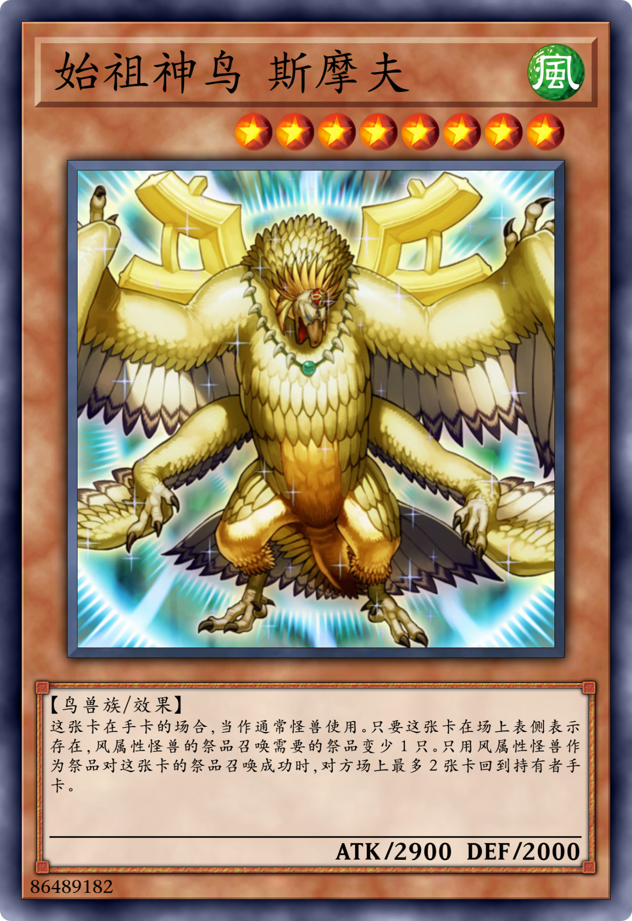 這些微妙的巧合,很難不讓人懷疑,始祖神鳥是K社爲風構體的效果挽尊而作。(雖然正經的斯摩夫卡組也不帶風構體玩就是了,笑)