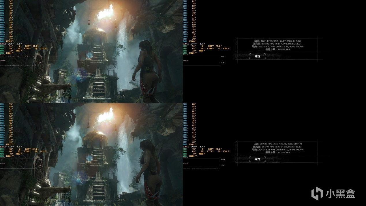 ▼古墓麗影,2K分辨率,全高畫質,這個測試9800X3D領先明顯,三個測試場景,山頂幀數表現差不多,敘利亞和地熱山谷,9800X3D的平均遊戲幀數高9700X近百幀,評價遊戲幀數高50幀,領先明顯。