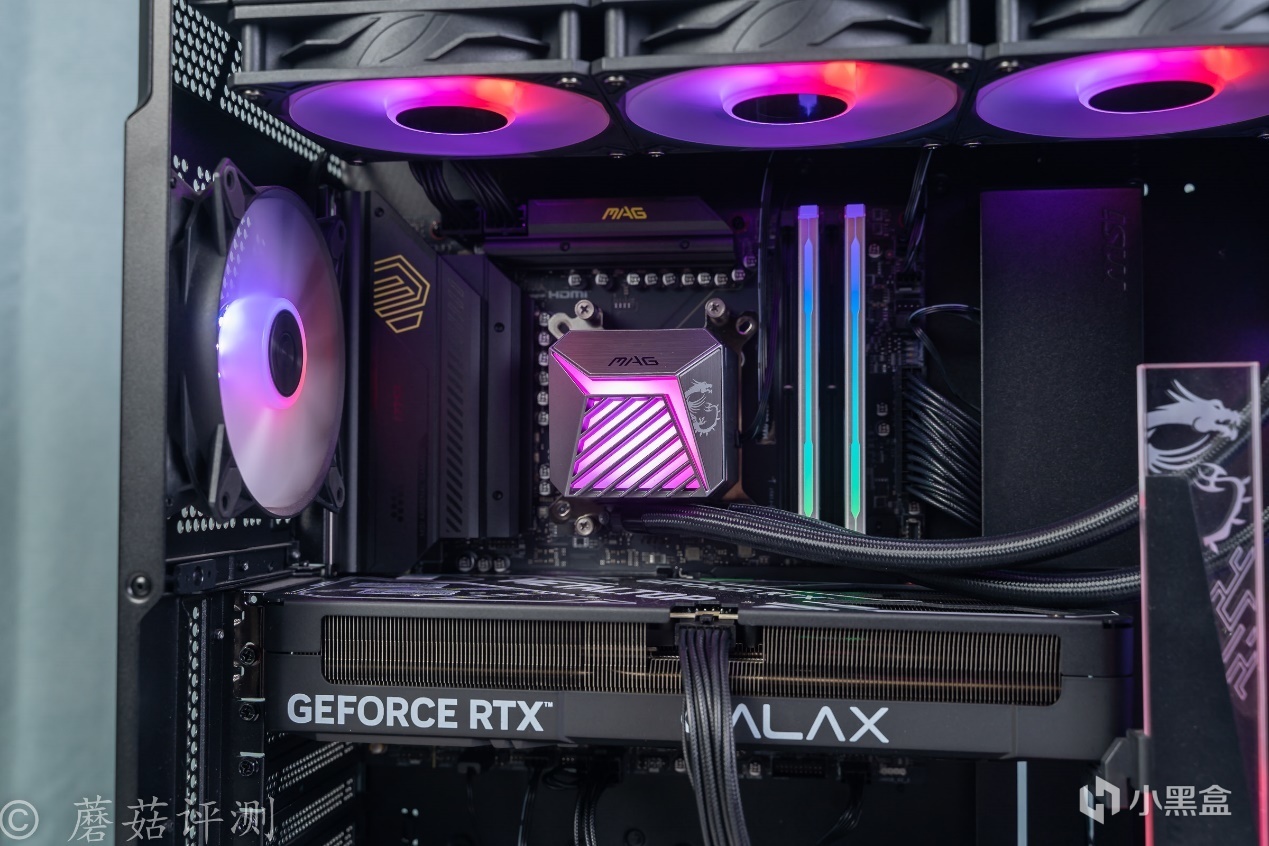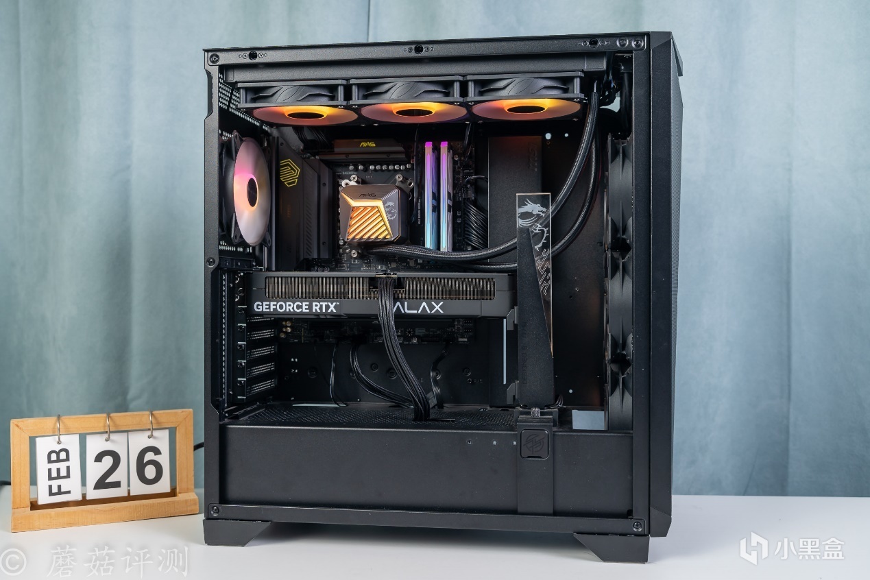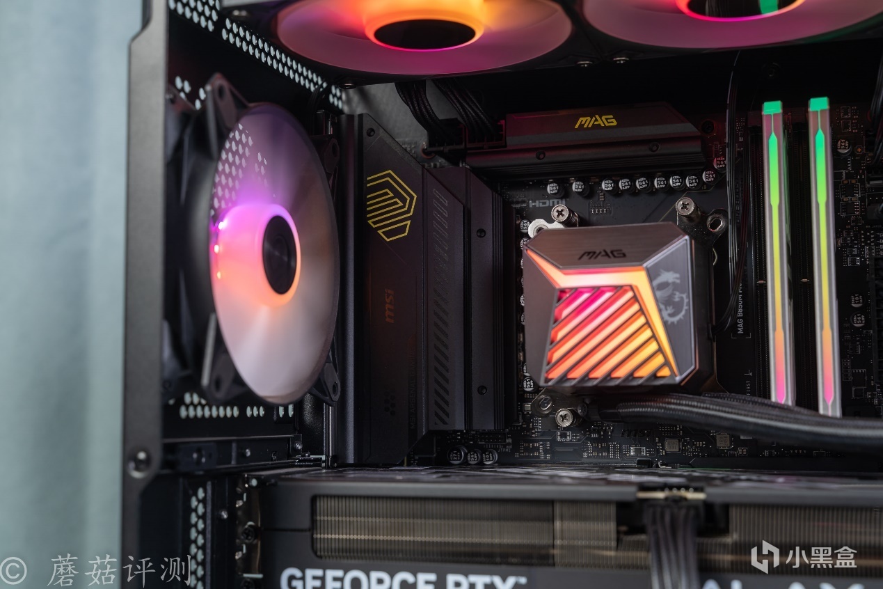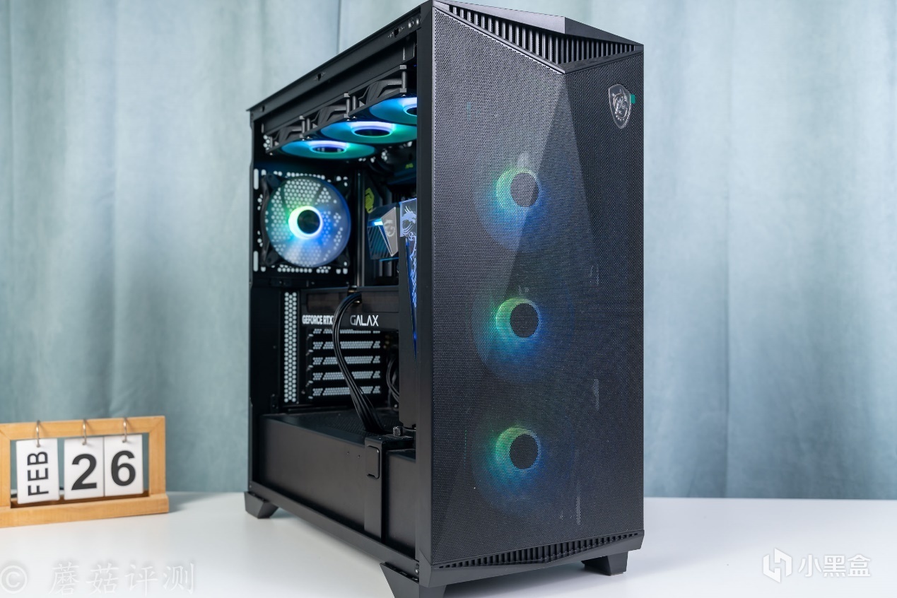 ▼機箱是微星的氪金槍3,機箱前部有大面積的金屬衝孔網,給機箱前部提供充足進風的同時,搭配機箱前部標配的支持ARGB的機箱風扇,視覺觀感還蠻好看的。