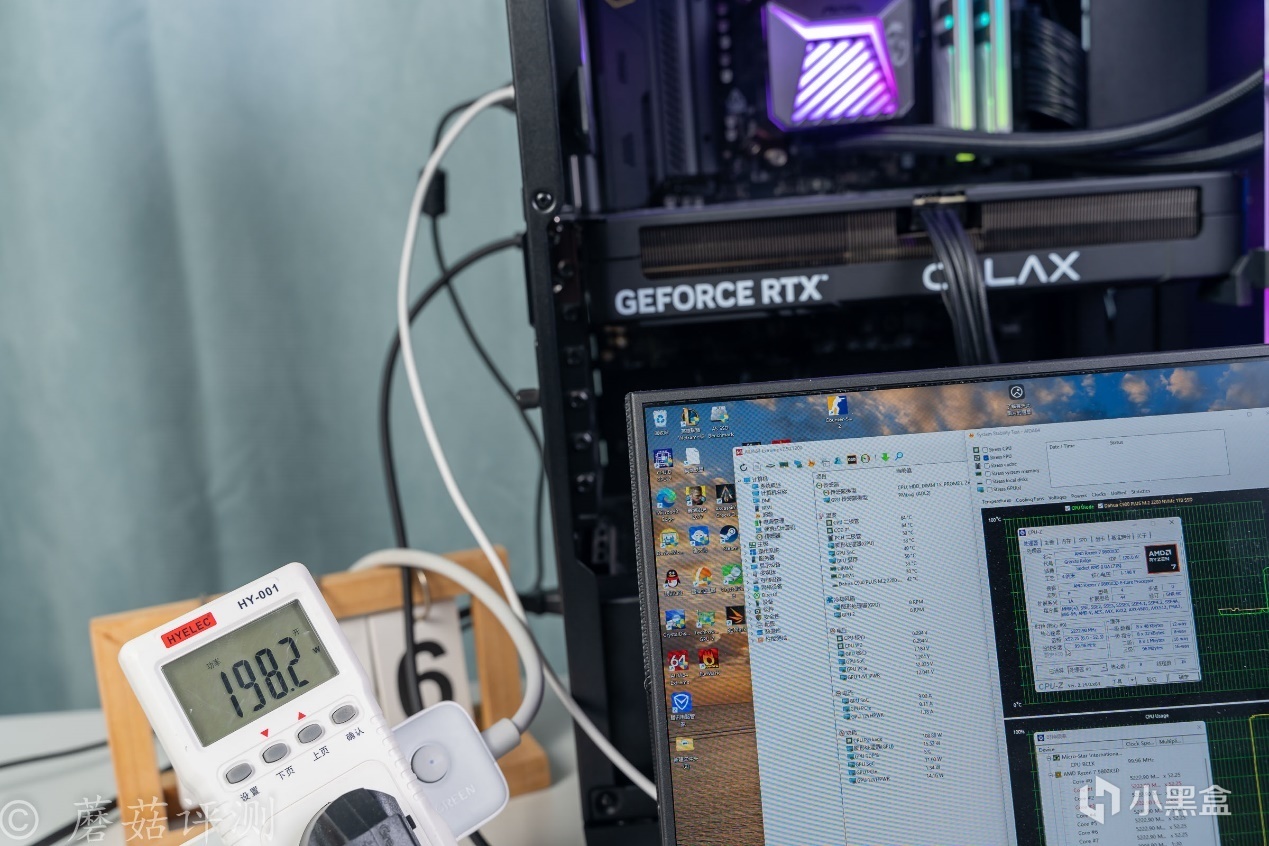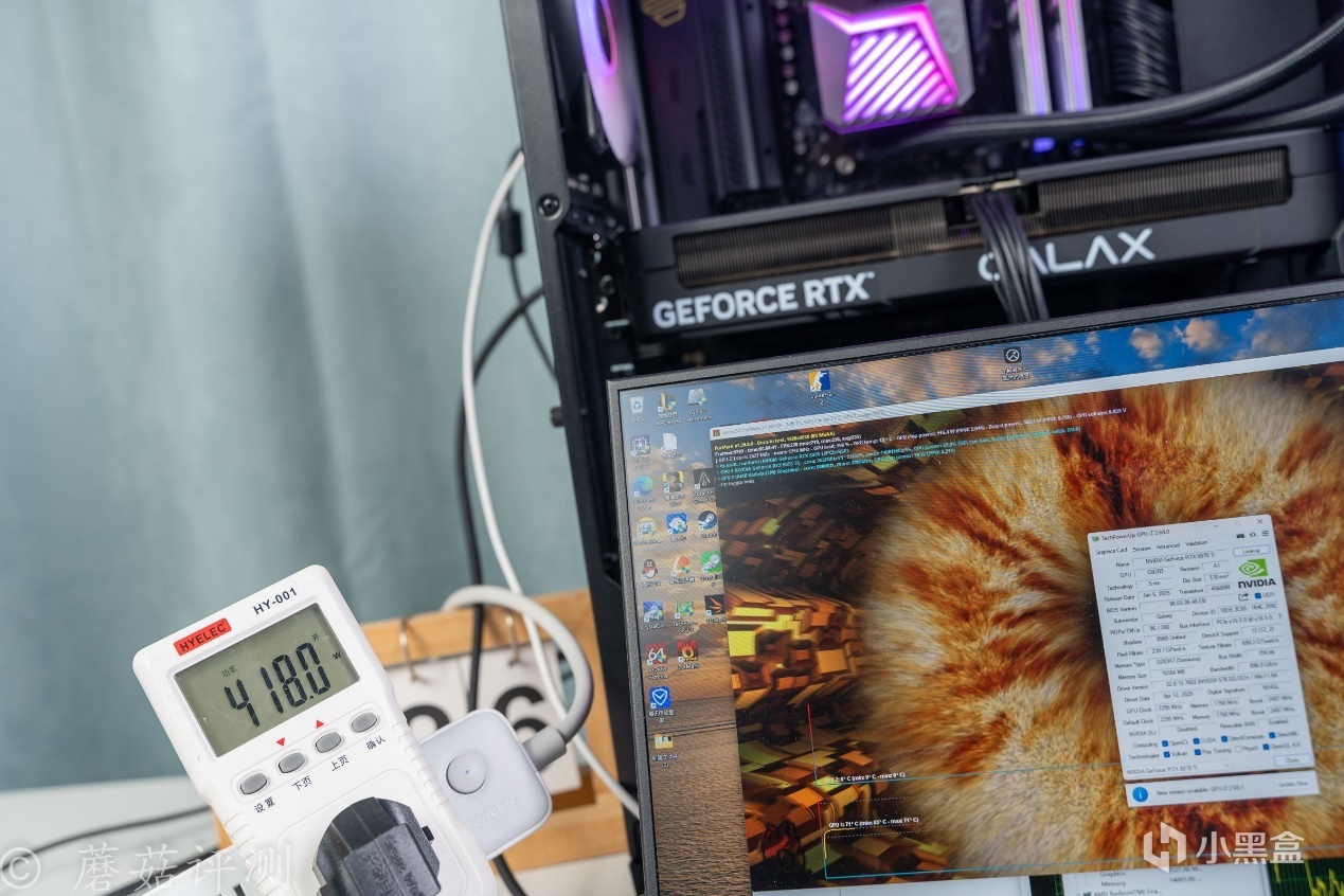 ▼50系顯卡的甜甜圈測試負載明顯要高一些,整機輸入功耗去到420W左右。