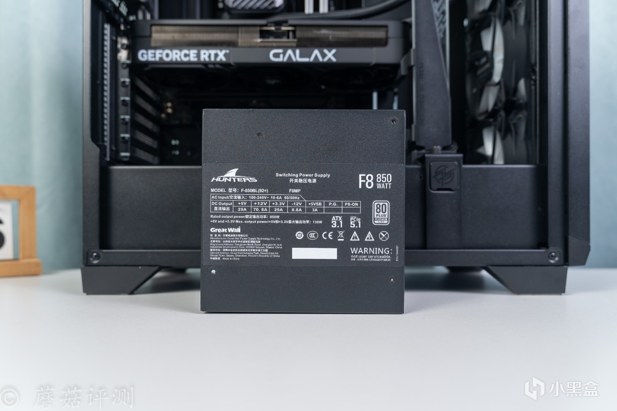 ▼電源用的是長城的F8 850W白金牌全模組電源,轉化效率可達92%以上,日常使用更加節能高效。另外這款電源支持最新的ATX 3.1,標配PCIe 5.1供電接口,擁有10年質保,平時用起來非常放心。