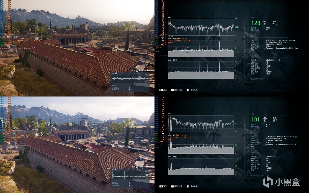 ▼衆生平等奧德賽,2K分辨率,全極高畫質,體積雲最低,9800X3D的平均遊戲幀數低9700X超過25幀,低的蠻多的。