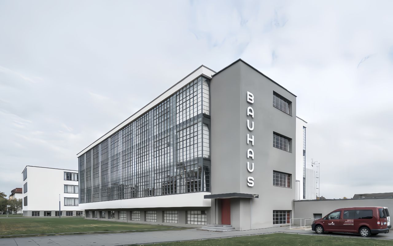 眼前的這個建築有着棱角分明的幾何體塊、平屋頂、鋼筋混凝土的結構、大面積的玻璃幕牆,在現代人眼裏看來平平無奇的建築,在1926年衆人看來無疑是先鋒且驚豔的。