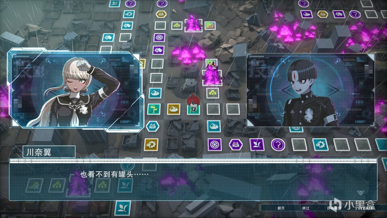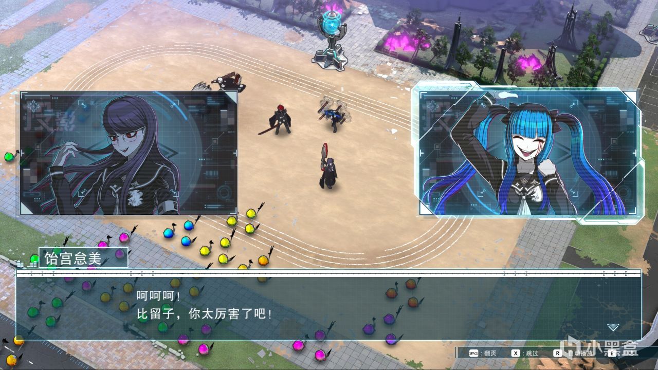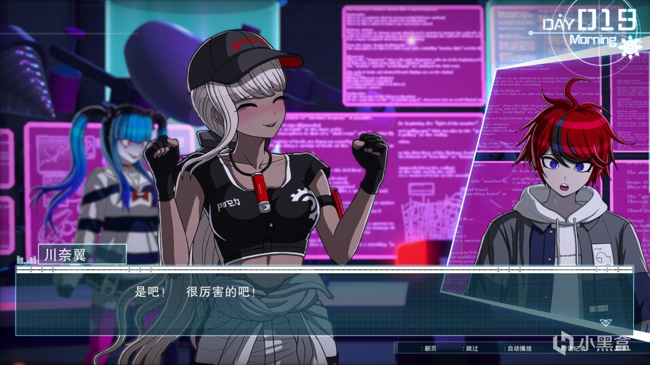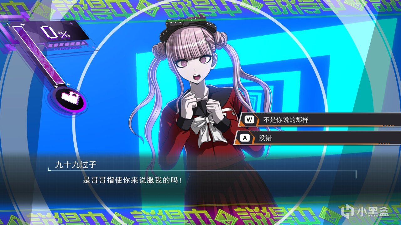 本作中,初始學園中有一半人是不參戰的,包括黑皮白毛妹和九十九兄妹,需要我們去找線索完成說服——說服的過程一個類似於《彈丸論破》辯論的小遊戲,需要及時選擇正確句子來說服角色,不過選錯了可以無縫讀檔,倒是沒什麼難度。