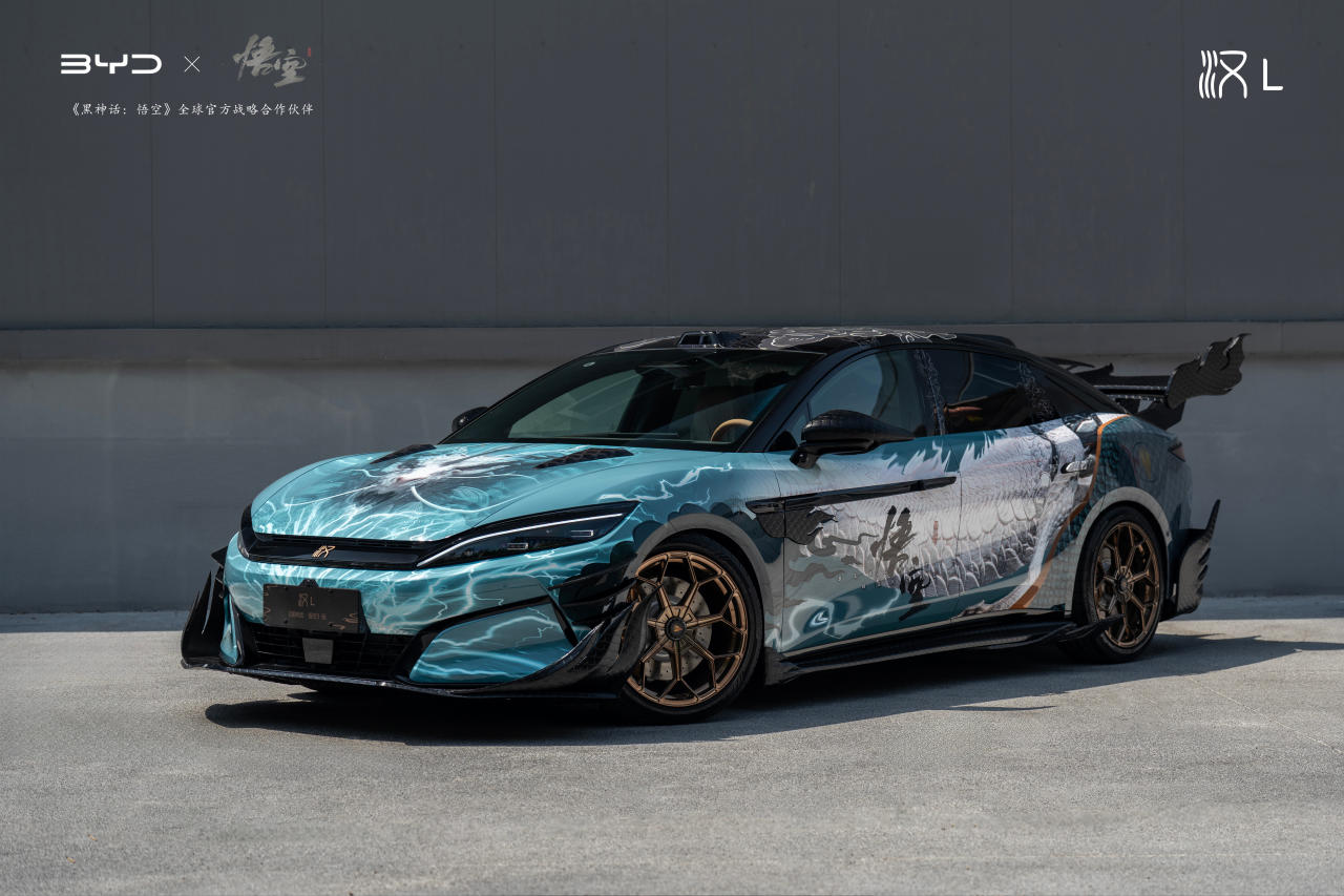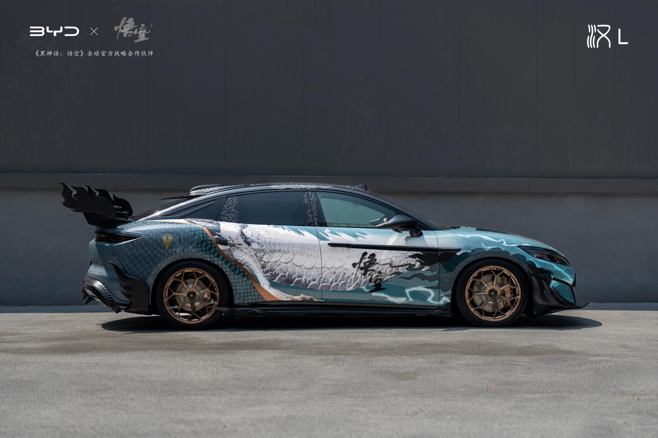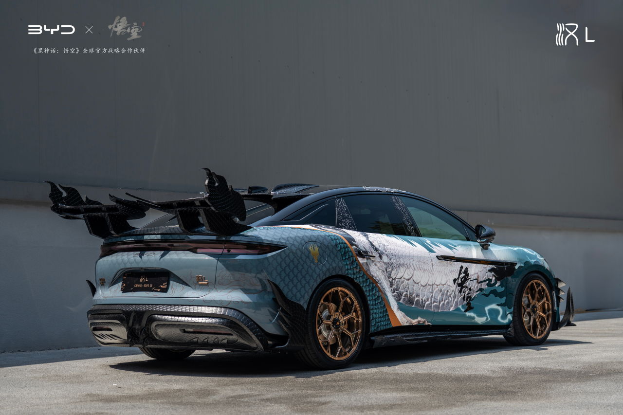 今日,比亚迪官方发布与《黑神话:悟空》联名改装车全貌图。