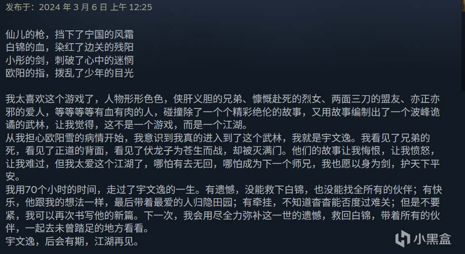 两年前,《逸剑风云决》用一个个老派武侠故事圆了许多玩家的少年大侠梦。Steam2.5万条玩家评论,好评率94%;小黑盒玩家数39万,评分9.6分,销量口碑双丰收。