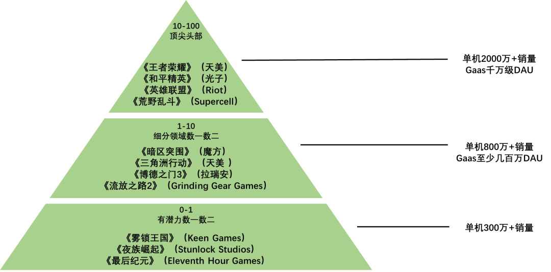 他介紹,騰訊的研發團隊佈局像是一個圓錐體。通過自研、投資,以及不同梯隊的團隊建設,它能形成一個穩定增長的基座,不同階段的團隊可以逐步提高成功概率,從而保障未來的N個爆款依然誕生在騰訊體系之內。