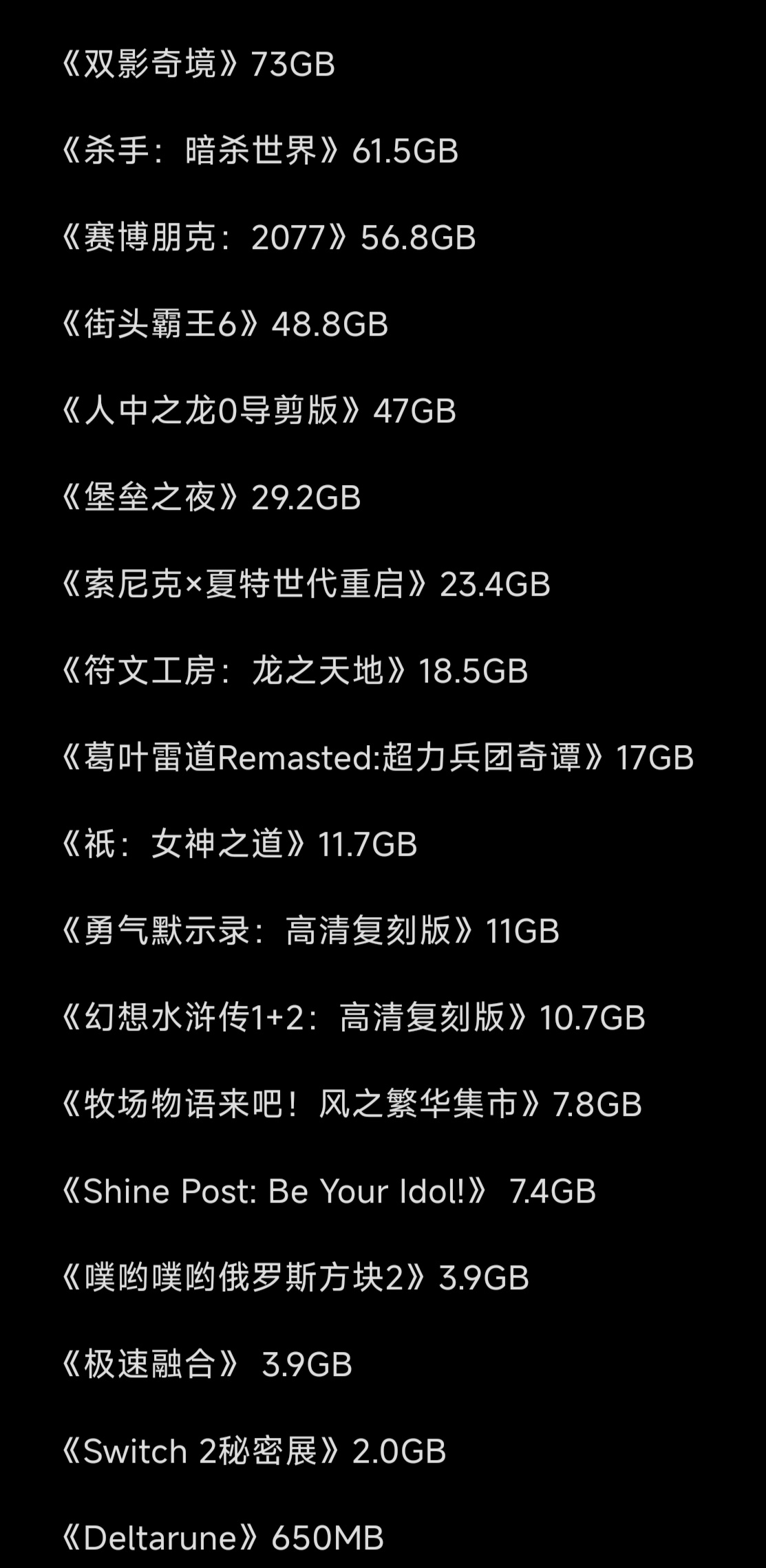 护航作除了《马里奥赛车:世界》其他旗舰IP缺席,《咚奇杠》3D这个其实也大,但是大伙想看的不是这个3D啊。此外护航的还有王泪无双、卡比:驭天飞行、ns2秘密展,而《宝可梦:ZA》、《密特罗德究极4》、《马派》将在ns2有画面升级。