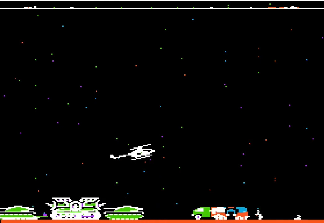 但其實RTS最早可追溯到1984年發佈於Apple II的《救援突擊者》(Rescue Raiders)。你需要操控直升飛機搬運你的單位,在拉扯中攻下左側的敵方基地。儘管目前在某些網站上還能玩到該遊戲,但難度較高且遊戲性欠佳。