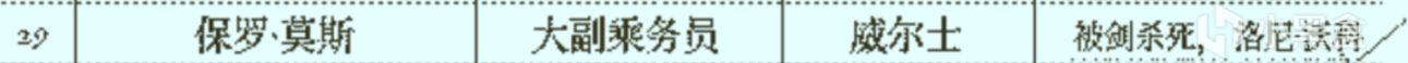 人物推斷:9-1對話中死者問他的法國夥計在哪,名單中只有副水手長是法國人,判斷6爲水手長,同時死者說的verdammt爲德語,而水手長籍貫奧地利正是德語圈印證這一推論。