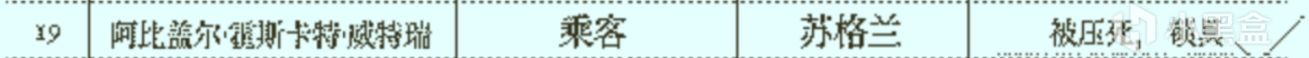 人物推斷:10-4船長獨白中得知開槍射死的是19號阿比蓋爾.霍斯卡特.威特瑞的兄弟,國外女子嫁人改夫姓,船長姓威特瑞,那麼女子原姓霍斯卡特,而名單裏只有2號大副姓霍斯卡特