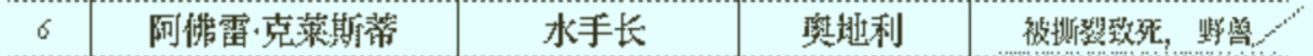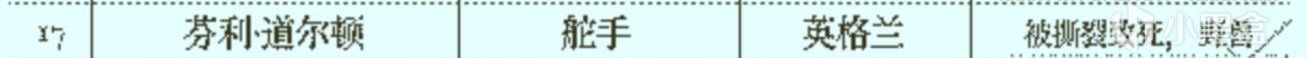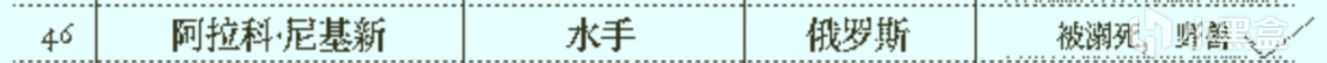 人物推斷:2-1場景三人組用俄語對話,6-1場景在桅樓上,名單裏只有一個俄羅斯籍桅樓守望員