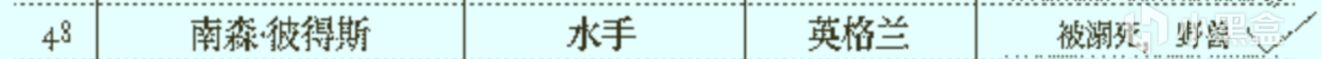 人物推斷:7-2場景中火炮甲板不在牀上的有48,49,36,57,7-1認定49號,36也很早判定,且對話中得知有兄弟,根據名冊可證確實爲48號的南森彼德斯