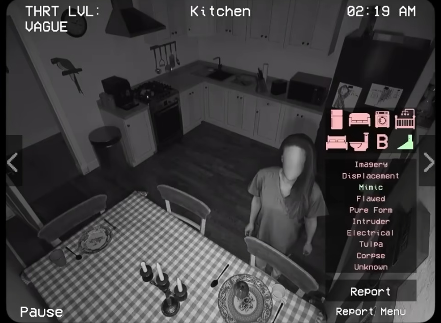 比如根據《曼德拉記錄》改編的遊戲《alternate watch》,它的玩法十分還原,需要人們通過監控畫面找出房子裏出現的各種異常現象,期間會有很多僞人前來造訪,這裏的僞人採用的就是契合原片的全身漆黑,面部缺失的形象,可以說是恐怖版“找不同”了。
