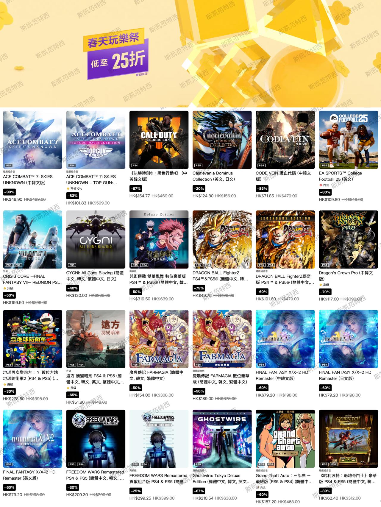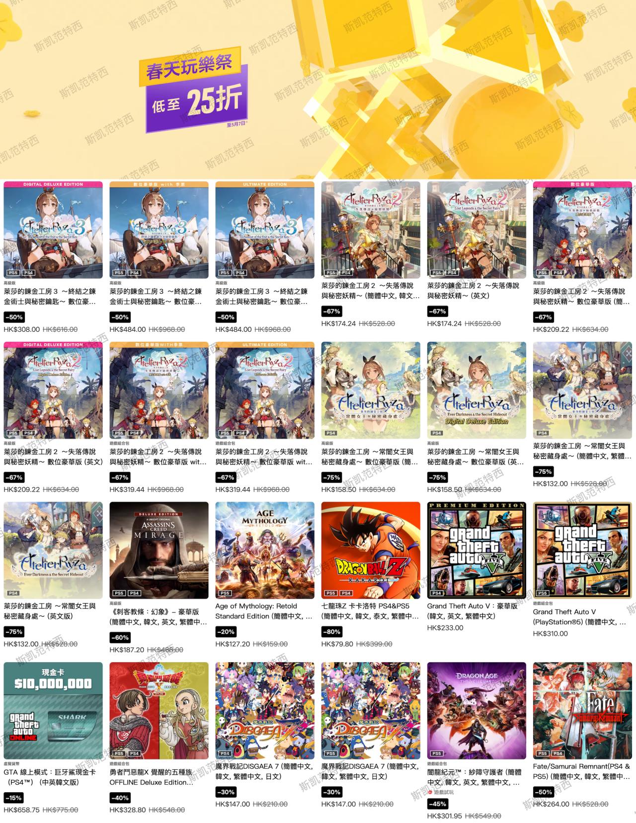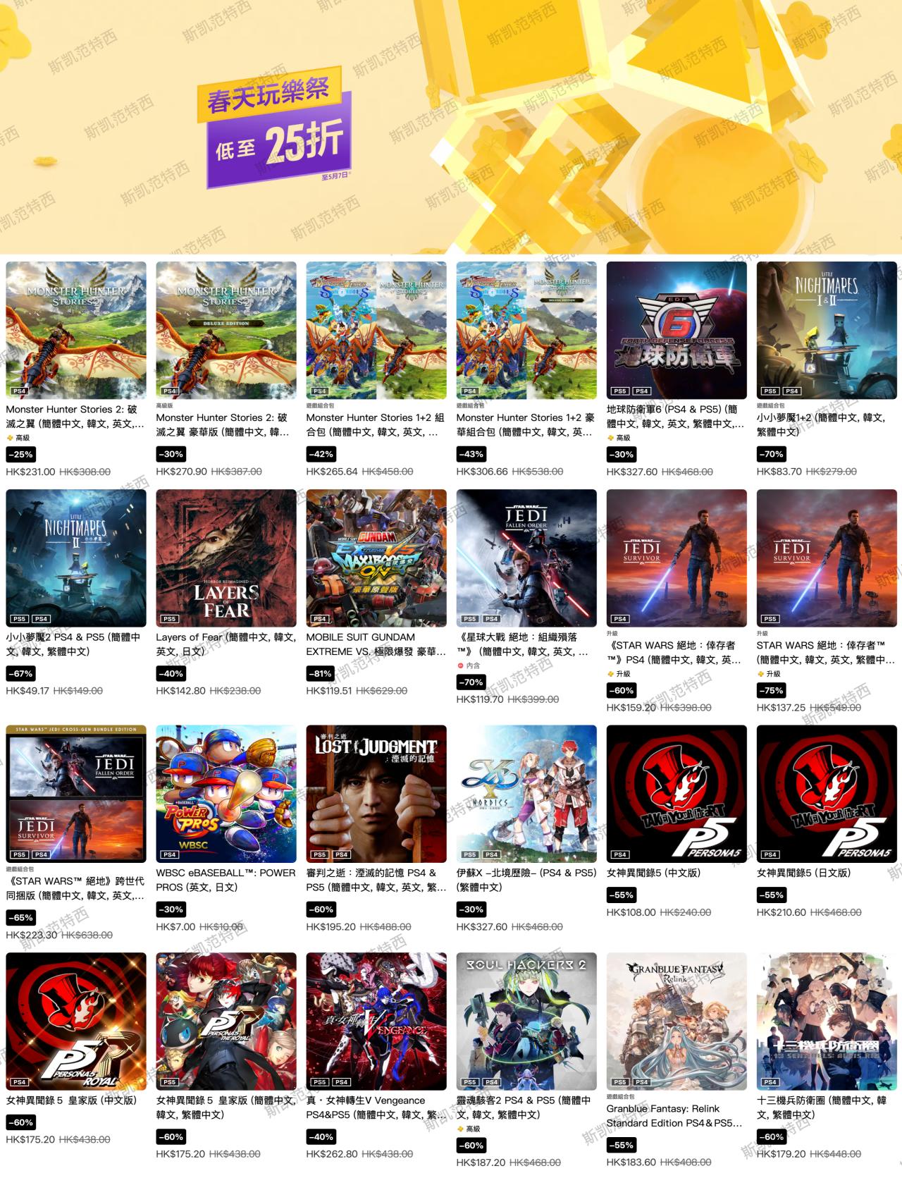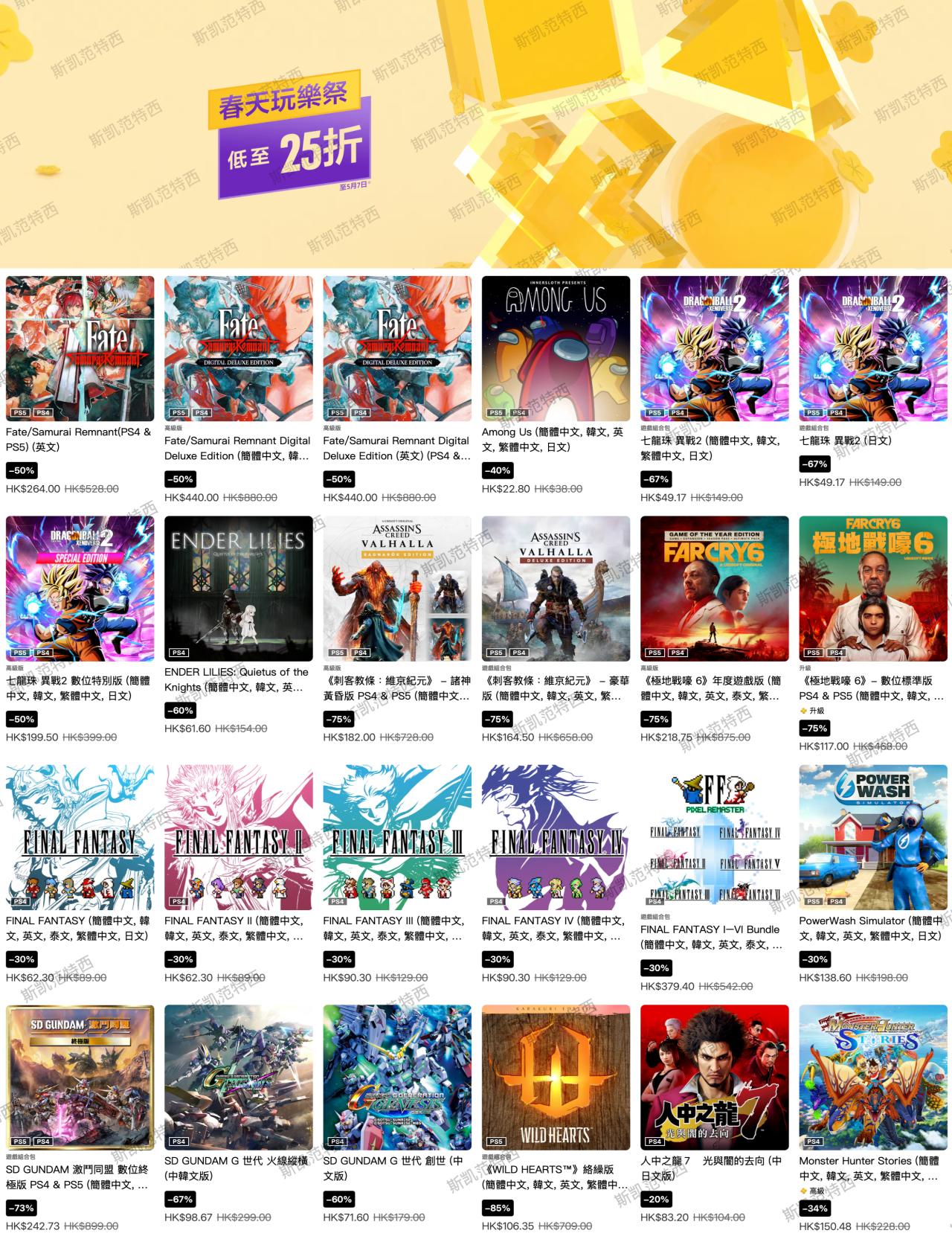 索尼PlayStation港服商店現已開啓春天玩樂優惠,本次遊戲優惠截至5月7日,有需要的朋友可以關注下。