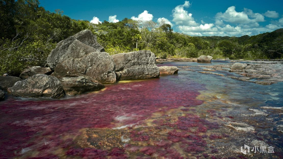 在哥伦比亚雨季和旱季之间的短暂时期, 水晶河的河水会变成一片红色、黄色和绿色的缤纷色彩。