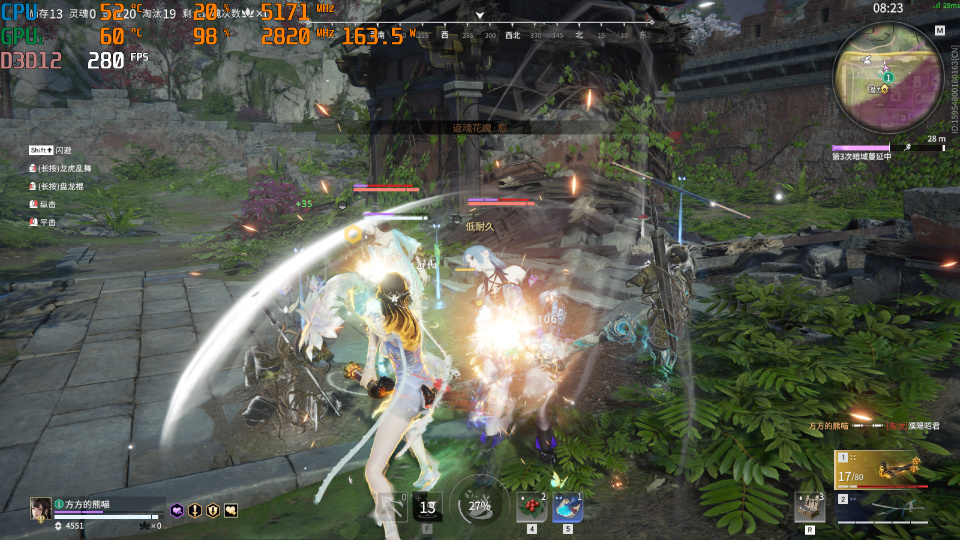 在2K分辨率+DLSS 4.0(4X)+極限畫質的加持下,遊戲幀數最高可達到300FPS以上,就算是激烈戰鬥場景也有280FPS左右的遊戲幀率。