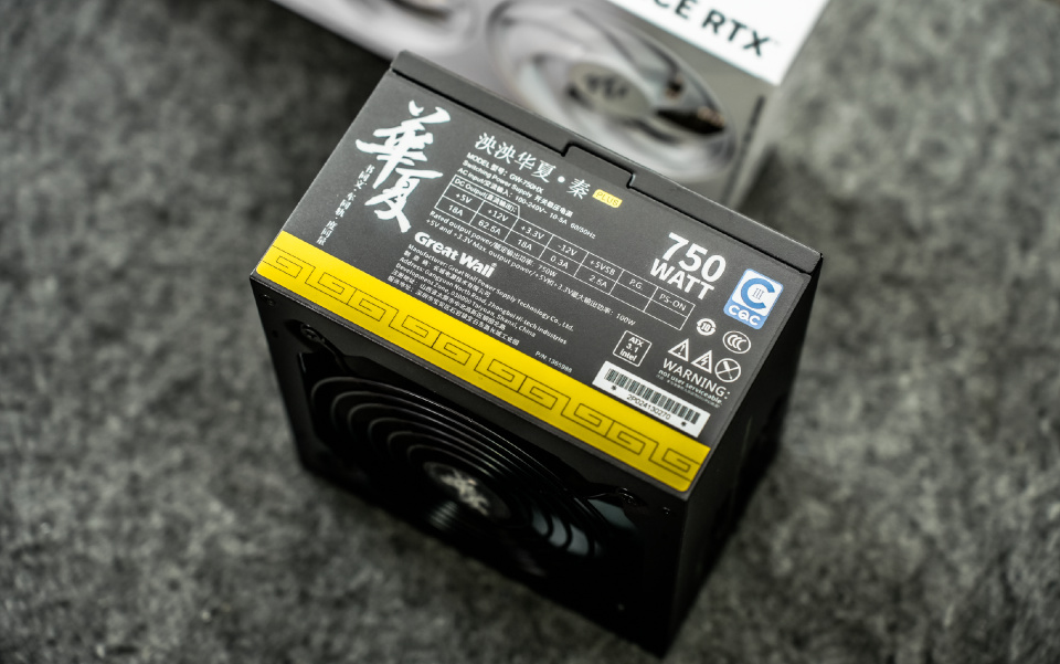 最後是電源,我這次用的是電源是長城泱泱華夏 秦PLUS-750W,該電源是一款長城出品的國風電源,額定功率爲750W,採用Intel ATX3.1高規格打造,並且該電源通過中國質量認證中心嵌入式電源III級能效認證典型負載轉換效率高達92%以上。