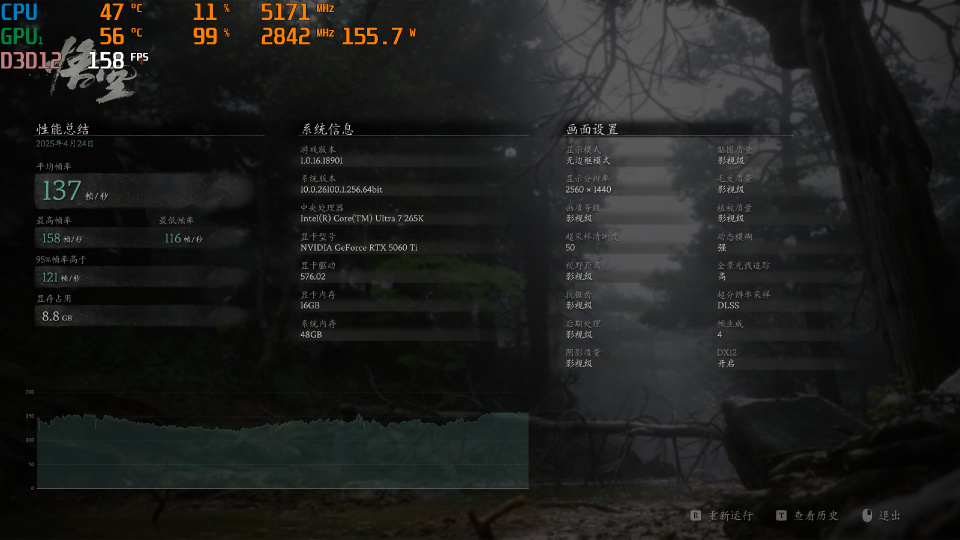 該遊戲在最近的更新中加入了對DLSS 4.0技術的支持。所以實測下來,2K分辨率+影視級+超採樣清晰度50+全景光線追蹤高+DLSS幀生成4X的加持下,遊戲測試平均幀率達到了137FPS。