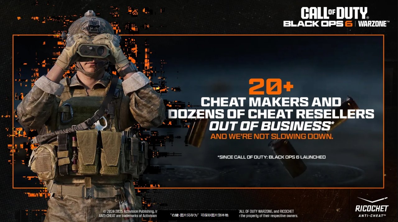 官方同時提到,自《黑色行動 6》發佈以來,已經關停了20多個外掛製造商,並且將繼續追查那些試圖破壞遊戲的人。
