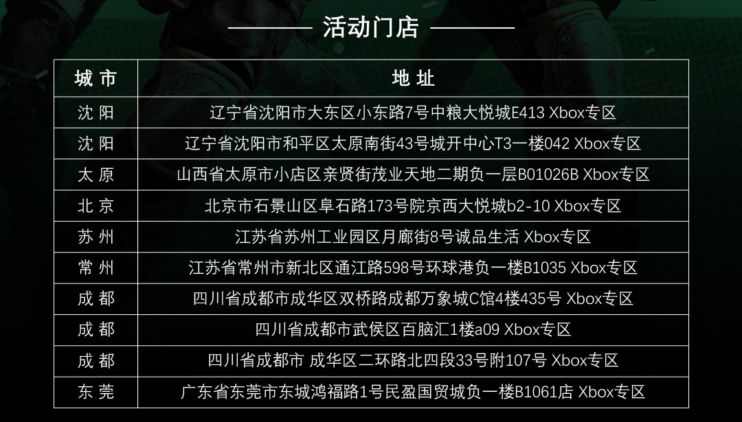 微軟在中國大陸推出“Xbox限時COD打卡任務”活動,即日起至5月9日,前往線下指定門店參與打卡活動,有機會獲得限量獎勵,包括一等獎實體周邊,二等獎“黑影部隊”高級通行證,三等獎200 CP(聽說是Xbox平臺)。