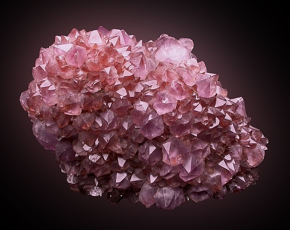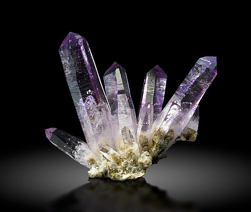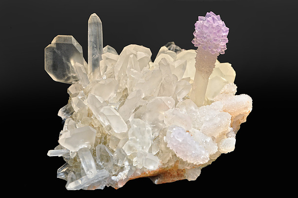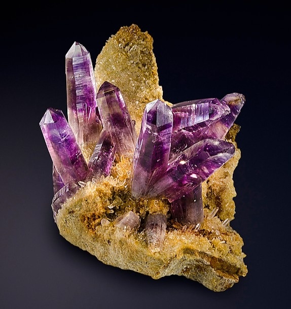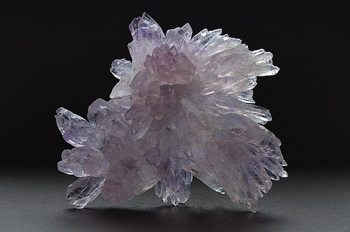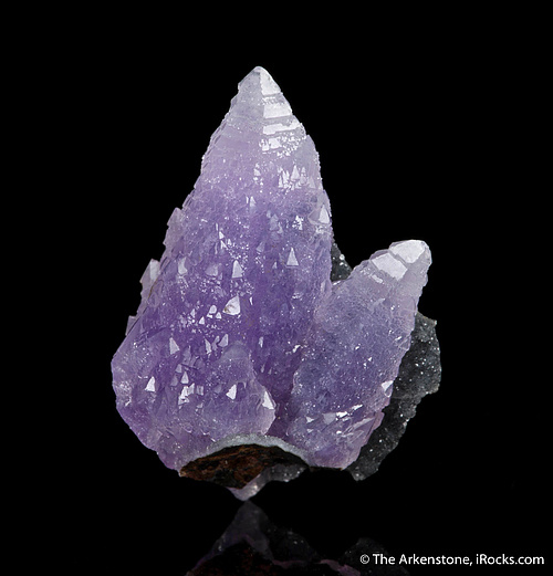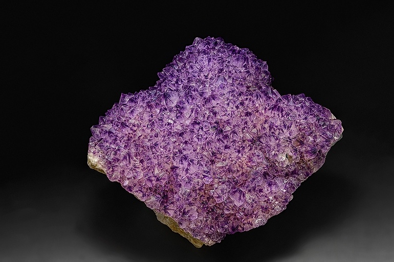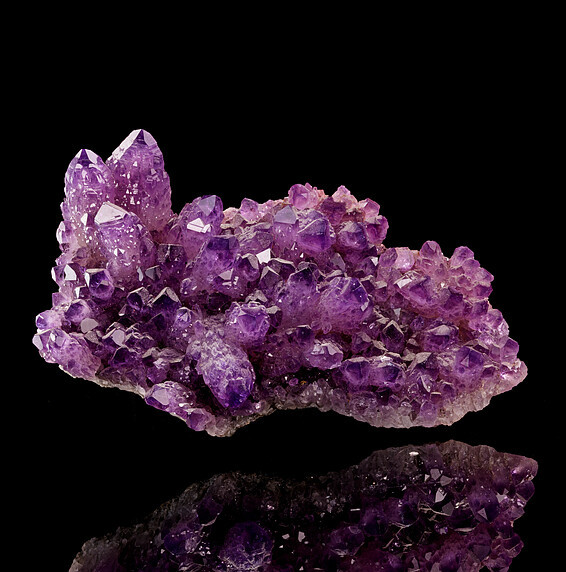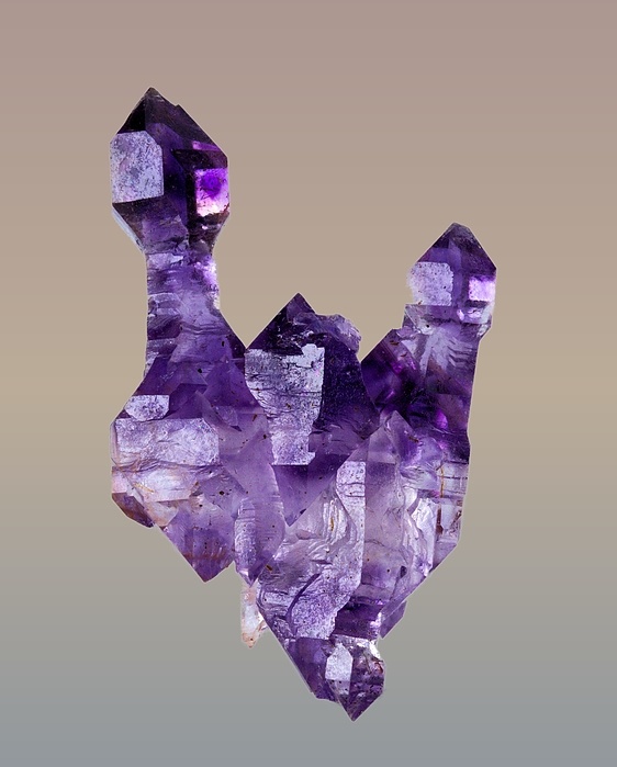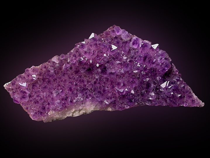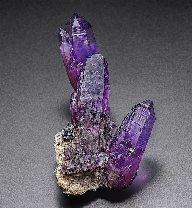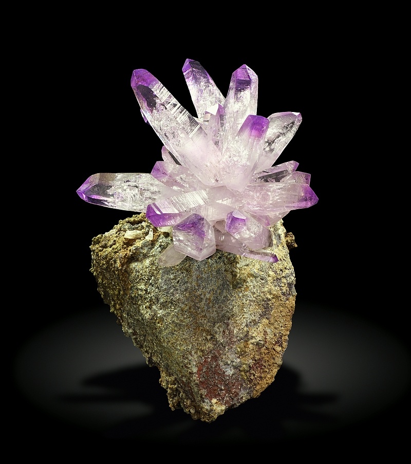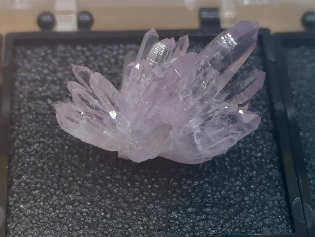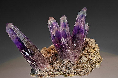 這個就是現實中的紫水晶標本了,它來自於墨西哥的經典產地——維拉克魯茲州。這裏產出的紫水晶有着乾淨透徹的晶體,迷人的紫色從生長的根部向水晶的尖端逐步變深,人們用產地的名字給這種夢幻的紫水晶命名:克魯茲水晶。