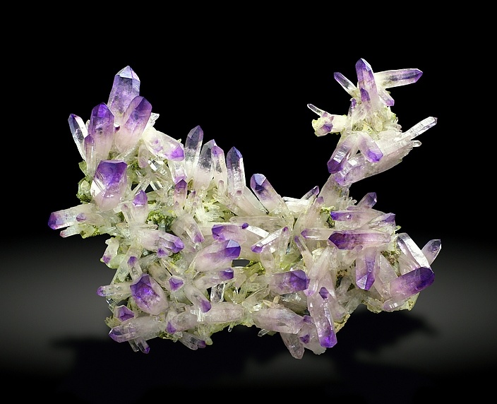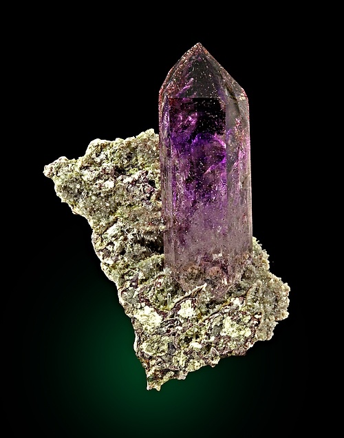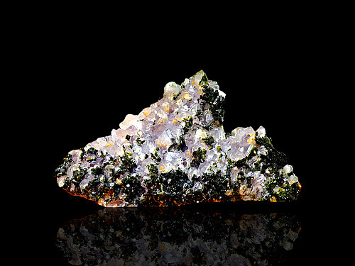 來自中國四川省美姑縣的紫水晶常常與綠簾石共生在一起,彷彿芳草中的花叢,簡潔而自然。
