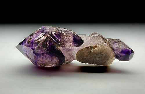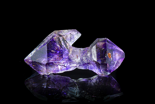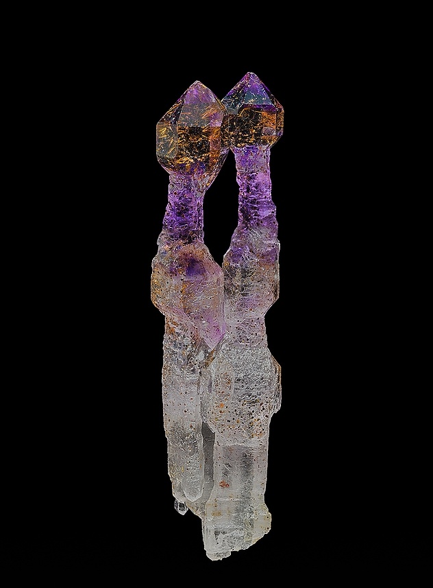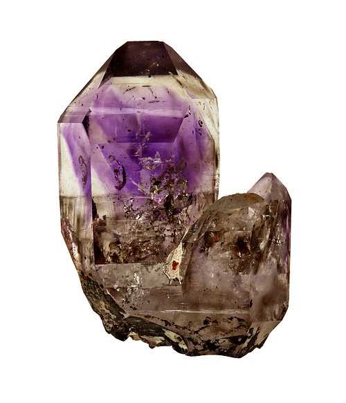 還有的紫水晶經歷了二次的生長。紫水晶A在物料不足或者空間有限的遇境下停止生長,紫水晶B則沿着原來的水晶柱繼續生長,這種接力棒一樣的生長方式讓人們有感而發,給它們起了“權杖水晶”這種中世紀風的名字。
