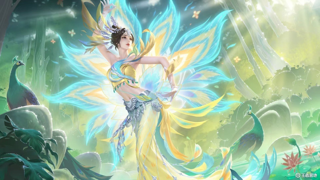 2023年10月28號上線,西施-至美乘鯉瑤已在去年週年慶返場過一次了,只剩下甄姬-至美化雀舞沒有返場過,皮膚形象是雲南傣族孔雀公主的服裝設計的,整體是明媚金黃色爲主,特效更是有着孔雀振翅飛舞的畫面,特效華美。