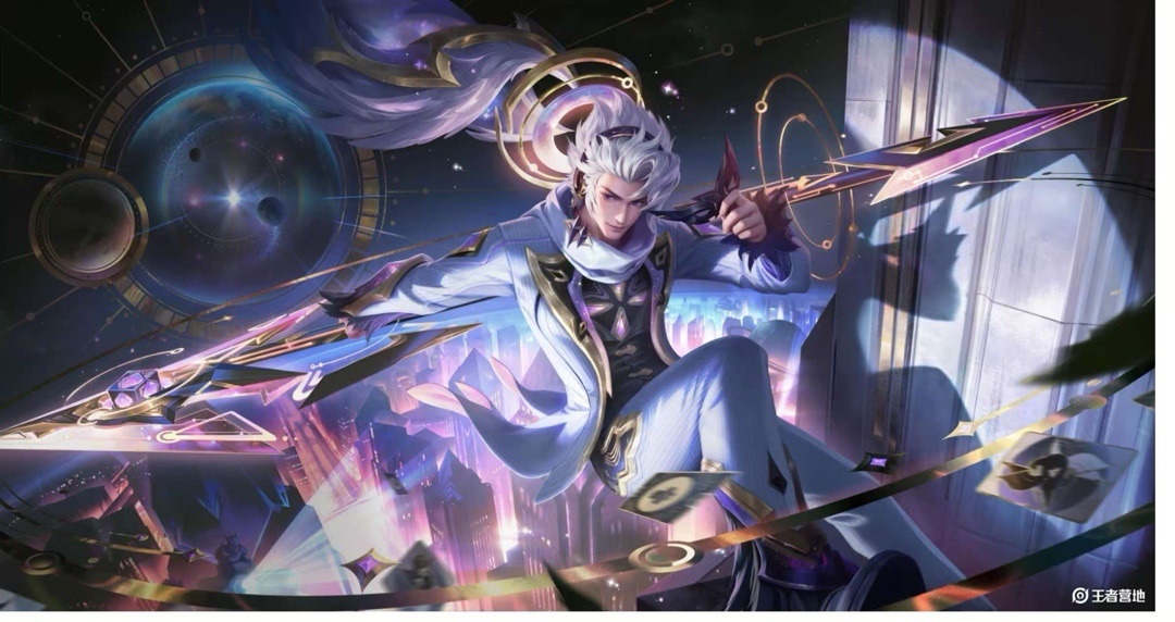 這款無雙皮膚的韓信是一個魔術師團長、空間魔術師的形象,已黑白紫配色爲主,擁有着雙形態頭上頂着一個雙馬尾,特效十分華麗,普通攻擊也是帶着藍紫色裂縫的顏色,還帶着一個面具哈哈哈,當初很多人調侃要去掉這個面具,一三技能都有隨機特效,皮膚品質還挺高的,建模真的很帥啊。