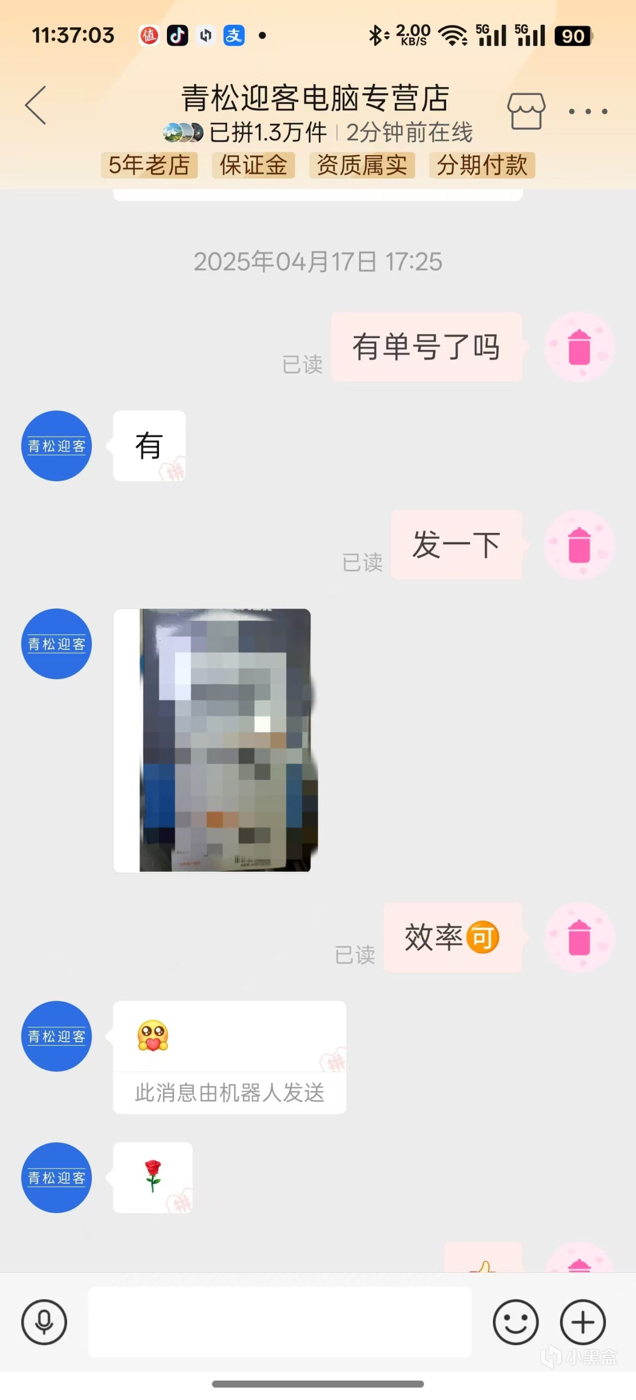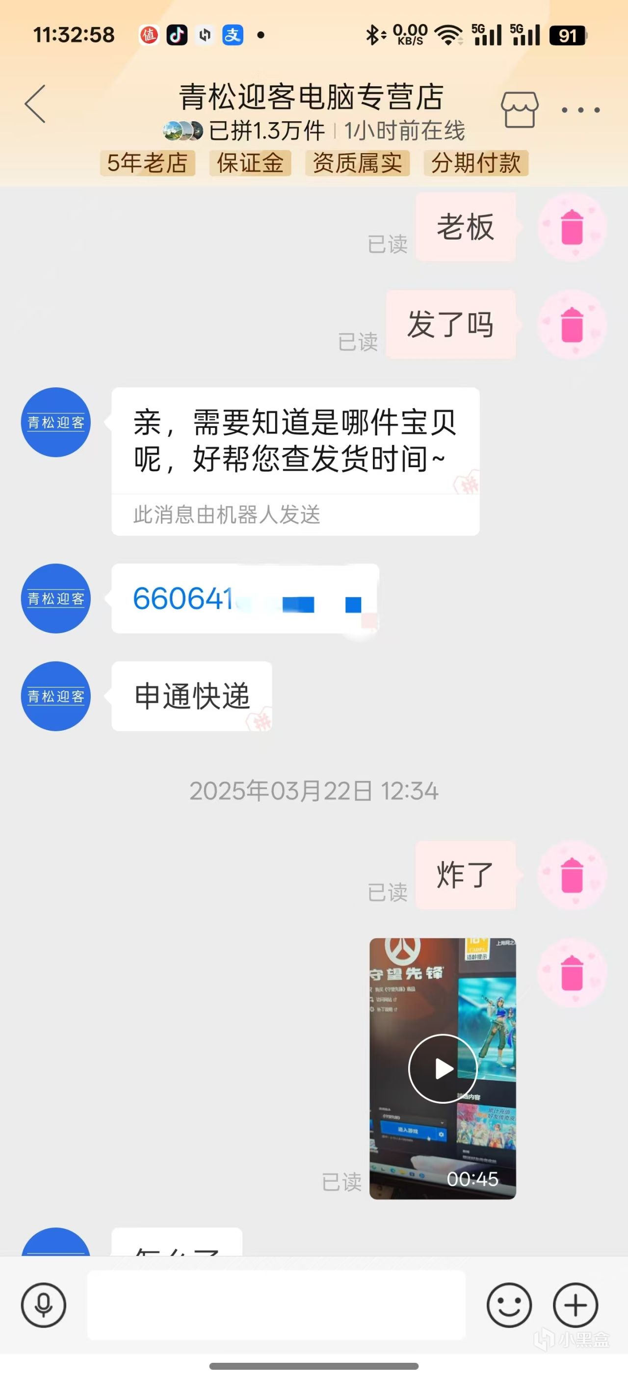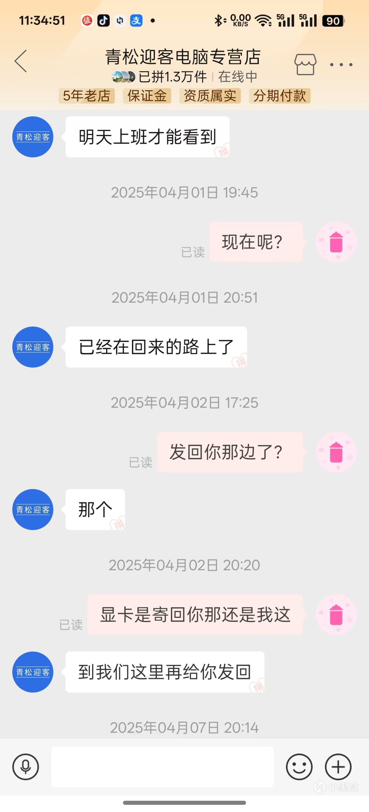 重点来了,4.1那天我问商家情况怎么样了,商家说显卡已经在回他那边的路上了(这个时候已经很开心了,因为大概清明假期结束回校就能拿到了我还是很满意的)