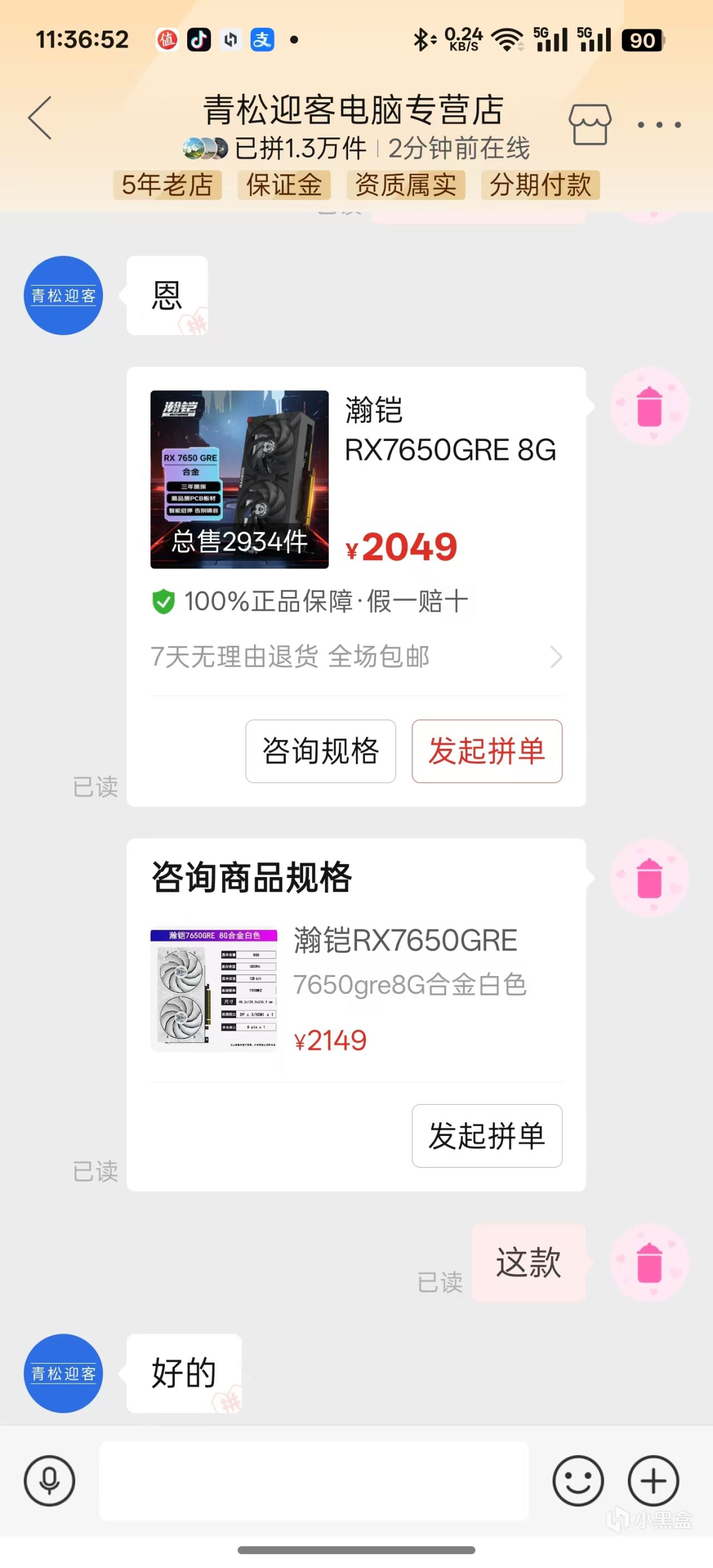 在他家选了一张瀚铠的7650GRE(后续有问题不想找他了,拿我当日本人整啊)